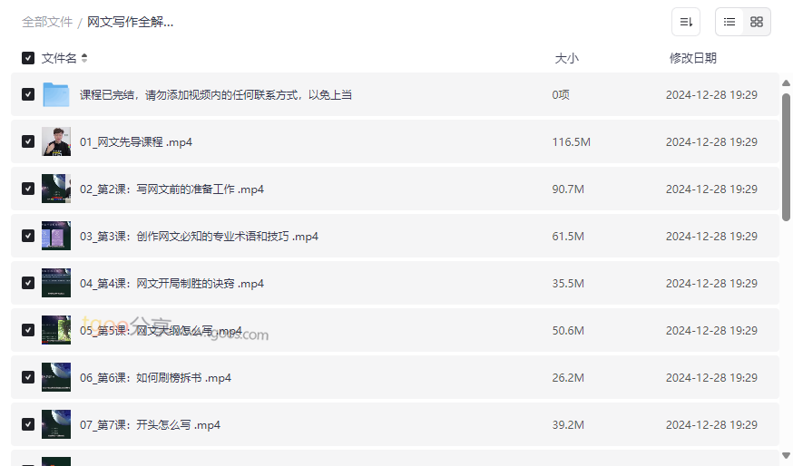 资源地址:《网文写作全解课程》从入门到签约全流程系统教学资源下载