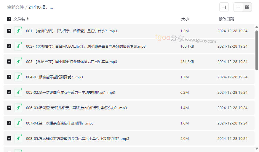资源地址:《21个妙招,教你相亲一次就成功》音频课程免费网盘资源下载