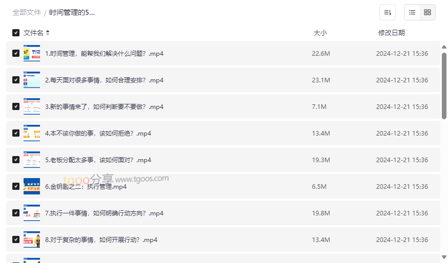 资源地址:《时间管理的5把金钥匙》高效工作生活管理课程免费网盘资源下载