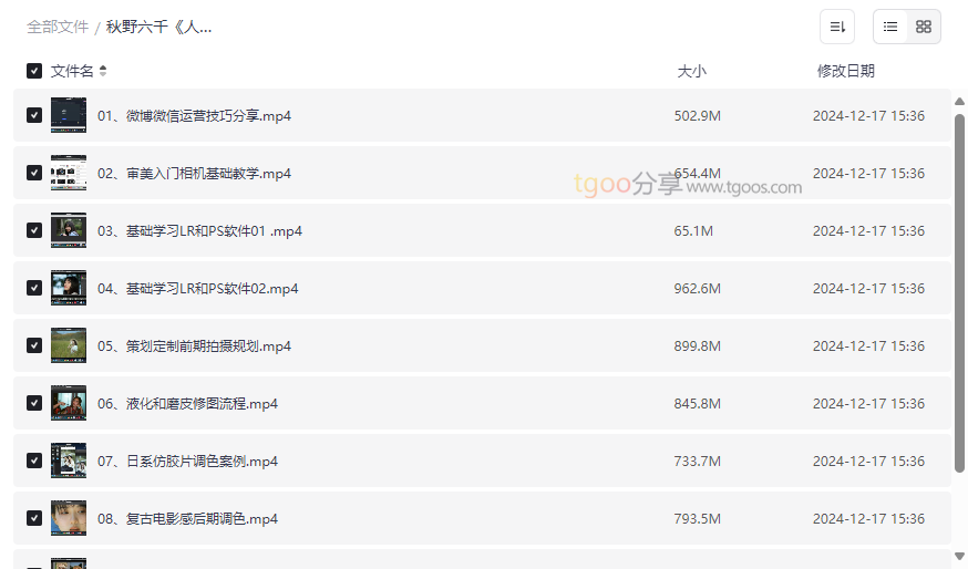 秋野六千《人像拍摄进阶修图课》资源截图展示