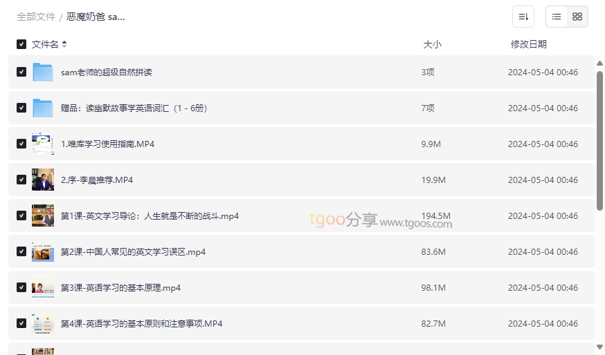 “恶魔奶爸Sam影响100万人的英语学习方法”是一套系统化、实战导向的英语学习资源,由知名英语教育博主恶魔奶爸Sam精心打造。本资源结合了自然拼读、语法解析、词汇拓展、分级学习路径等多维度内容,旨在帮助学习者打破传统英语学习瓶颈,实现高效提升。课程覆盖从零基础到高级的全阶段学习需求,并融入大量实用技巧与真实案例,特别适合: