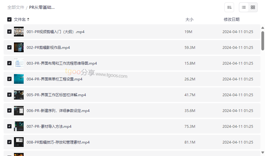PR从零基础入门到视频剪辑大神教程(100集全)资源目录
