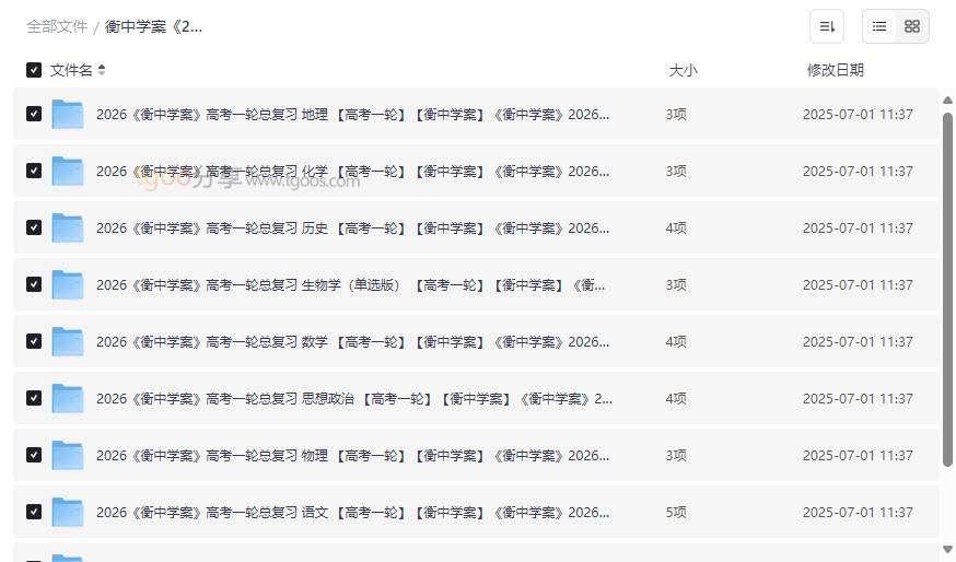 衡水中学作为全国知名的教育标杆,其内部教学资源一直备受关注。本次分享的《2026高考一轮总复习·全九科》是衡水中学为2026届高考生精心打造的系统复习资料,涵盖语文、数学、英语(人教版/外研版)、物理、化学、生物、政治、历史、地理九大学科,每科均包含学案PPT、练案WORD、电子教参WORD三大模块,形成“讲—练—辅”一体化学习闭环。这套资源不仅适合高三学生进行系统复习,也适用于高一、高二学生提前构建知识框架,尤其适合: