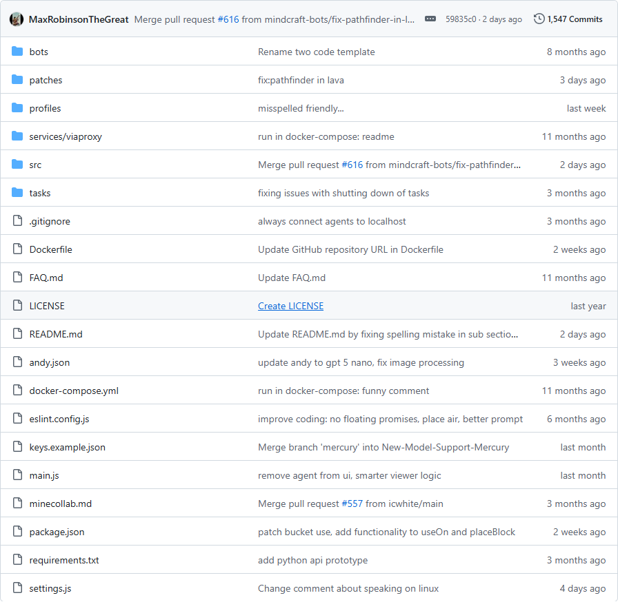 $ git clone https://github.com/mindcraft-bots/mindcraft.git