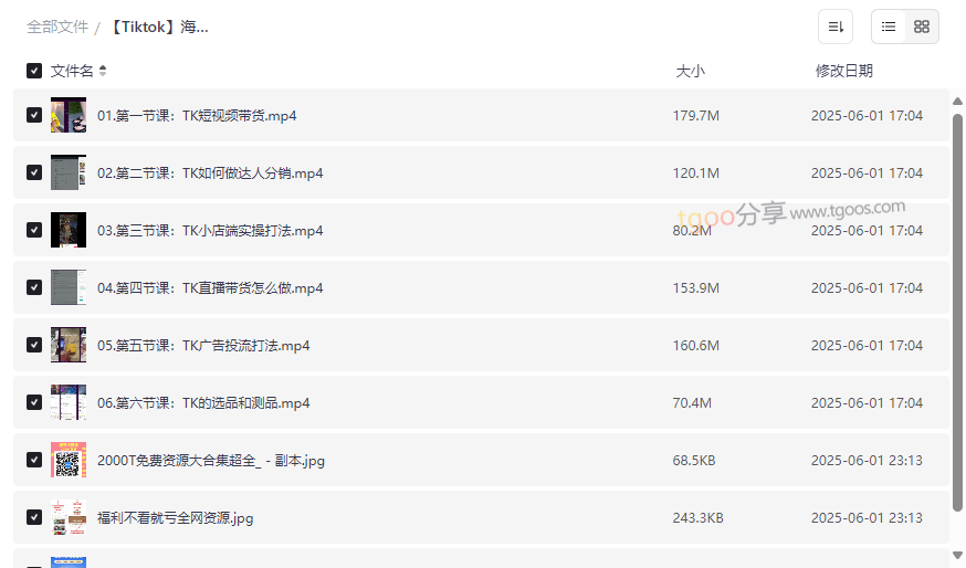 Tiktok海外抖音系统模块实操课资源目录