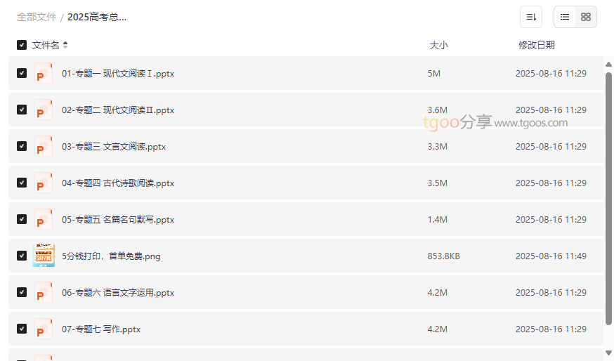 “2025高考总复习PPT”作为一套系统化、模块化的备考资料,专为即将参加2025年高考的学生量身打造。本资源覆盖现代文阅读、文言文阅读、古代诗歌鉴赏、名篇名句默写、语言文字运用、写作及高考创新题等七大核心专题,通过精心设计的PPT课件,将繁杂的高考知识点可视化、条理化,帮助考生高效梳理知识框架。适合: