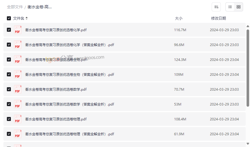 “衡水金卷·高考总复习原创优选卷”作为国内知名的高考复习资料,以其权威性、系统性和实战性深受广大师生信赖。本资源集合了 语文、数学、英语、物理、化学、生物六大主科的完整试卷及配套答案全解全析,全面覆盖高考核心考点,精准对标新高考改革趋势。每一科均配备独立的试题卷与解析卷,帮助考生高效自查、深度纠错,是冲刺阶段查漏补缺的优选工具。适合: