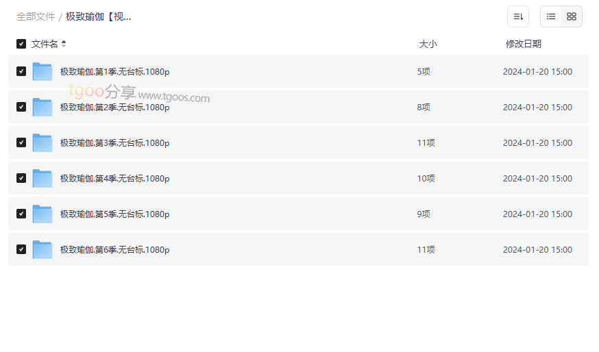 “极致瑜伽”是一套系统化、专业化的瑜伽教学视频合集,总容量高达 67GB,涵盖六季完整内容,每季均以无台标、1080p高清画质呈现,确保视觉体验与练习效果同步提升。本资源集合了从基础热身到专项强化、从身体塑形到情绪调节的全方位瑜伽课程,适合: