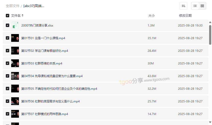 在数字化营销日益重要的今天,私域流量运营已成为企业和个人实现可持续增长的核心竞争力。本套《高端私域社群从0到1增长实操课》资源,系统性地整合了社群搭建、用户运营、裂变增长、会员体系设计等关键模块,内容涵盖社群思维本质、用户分层方法、私董会运营、产品组合策略等实战内容,并附赠《2000T热门资源分享》《全网新闻媒体资源表》等实用工具。无论是初创企业主、营销从业者,还是希望提升个人影响力的内容创作者,都能通过本课程掌握私域运营的底层逻辑与落地方法,实现流量精准转化与用户长期价值挖掘。