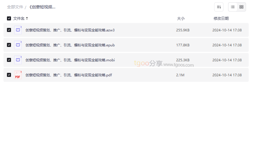 在短视频内容日益成为主流传播媒介的今天,如何系统掌握从策划到变现的全流程技能,成为众多内容创作者、营销从业者以及创业者的迫切需求。《创意短视频策划、推广、引流、爆粉与变现全能攻略》正是一本全面覆盖短视频运营核心环节的实战手册,本资源集合了 AZW3、EPUB、MOBI、PDF 四种主流电子书格式,适配手机、平板、电纸书等多种设备,方便用户随时随地学习提升。