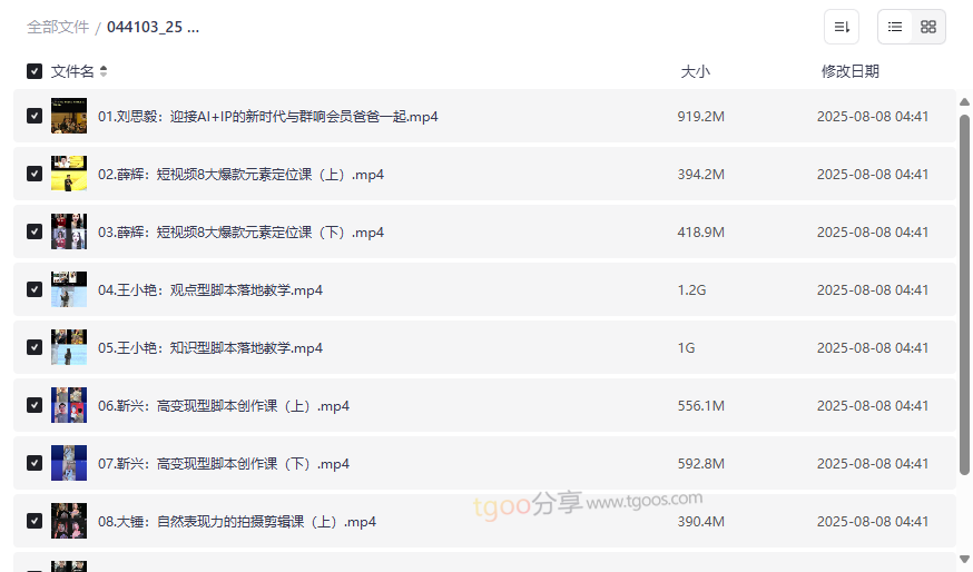“25年最棒的短视频IP专题技能课”是专为短视频创作者和品牌运营者设计的高质量网盘资源合集,汇集了多位行业专家的实战经验与系统方法论。本资源涵盖了从AI+IP战略布局、爆款元素定位、脚本创作技巧、表现力拍摄剪辑到精准投放策略的全链路内容,将理论知识与实操案例深度结合,适合: