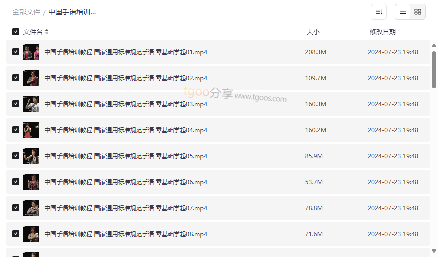 资源地址:《中国手语培训教程》44课标准手语视频网盘资源下载