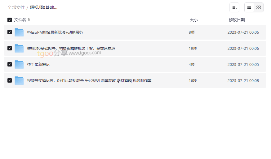 短视频0基础起号运营资源截图展示