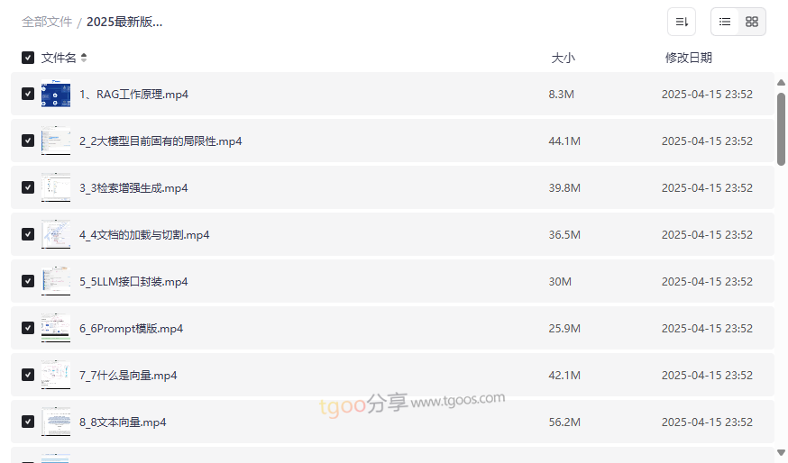 2025最新版大模型RAG入门到精通实战教程资源目录