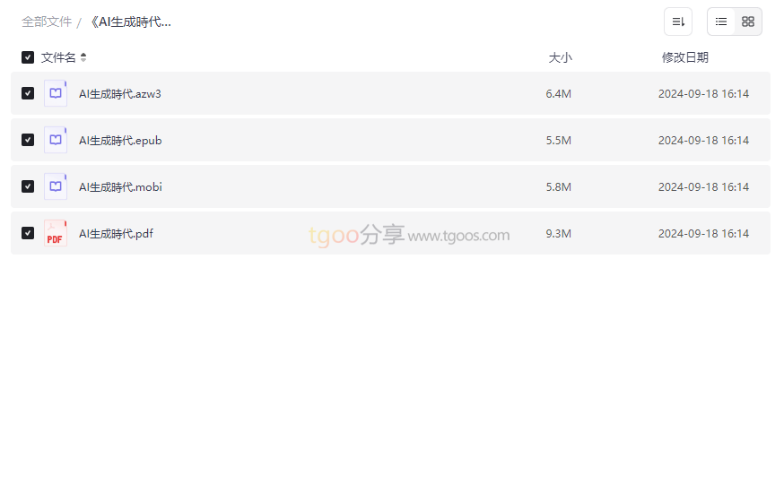 《AI生成時代》是一本深度探讨人工智能在内容创作领域应用的权威指南,系统性地介绍了如何利用AI技术提升创作效率、拓展创意边界。本书不仅适合技术从业者,也为广大创作者提供了实用的工具和方法论。本资源集合了 AZW3、EPUB、MOBI、PDF 四种主流电子书格式,满足不同设备阅读需求,具有以下核心价值: