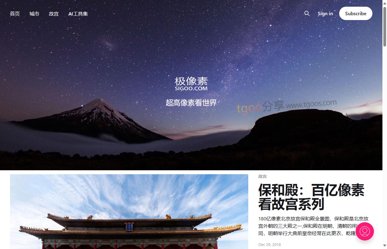 极像素(Sigoo)是一个专注于超高像素图像展示与探索的在线平台,提供全球各地超高分辨率全景图片的浏览服务,帮助摄影爱好者、旅行者、设计师、教育工作者及普通用户实现沉浸式视觉体验与场景探索。该平台汇集了众多超高像素的全景照片,覆盖自然风光、城市景观、名胜古迹、室内空间等多个类别,让用户能够以极高的清晰度”云游”世界各地。据公开信息,极像素支持网页端直接访问,无需下载安装,操作简单直观;图片加载流畅,通常无需科学上网即可正常使用。平台目前提供免费浏览服务,用户可自由探索各类超高像素全景内容,适合用于虚拟旅行、教学展示、设计参考、旅行规划等多种场景。与传统图片网站相比,极像素专注于超高像素内容的深度展示,为用户提供更细致、更真实的视觉体验。