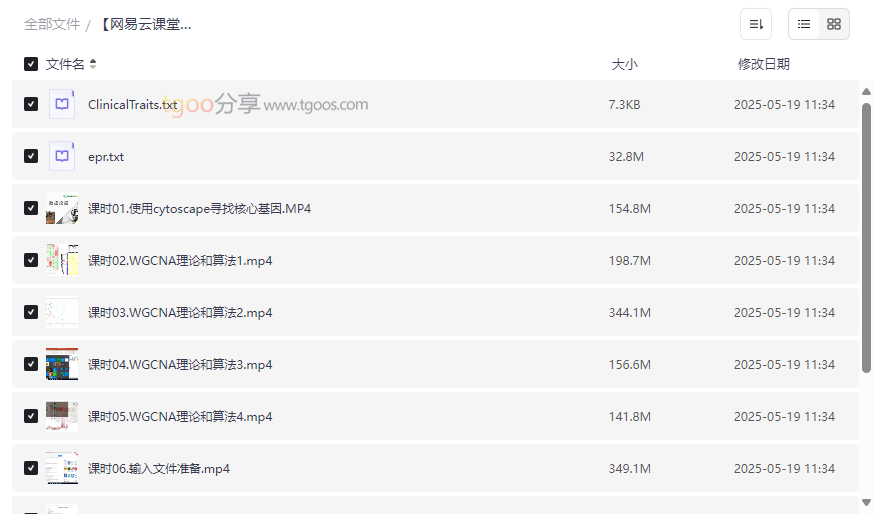 “WGCNA(加权基因共表达网络分析)”作为生物信息学中强大的数据分析工具,广泛应用于基因表达模式识别和模块化网络构建。本资源源自网易云课堂热门课程,由豪斯医生团队精心打造,涵盖WGCNA完整理论体系、实操演示、临床数据整合及核心基因识别技术,将复杂的生物信息学分析方法系统化呈现,适合: