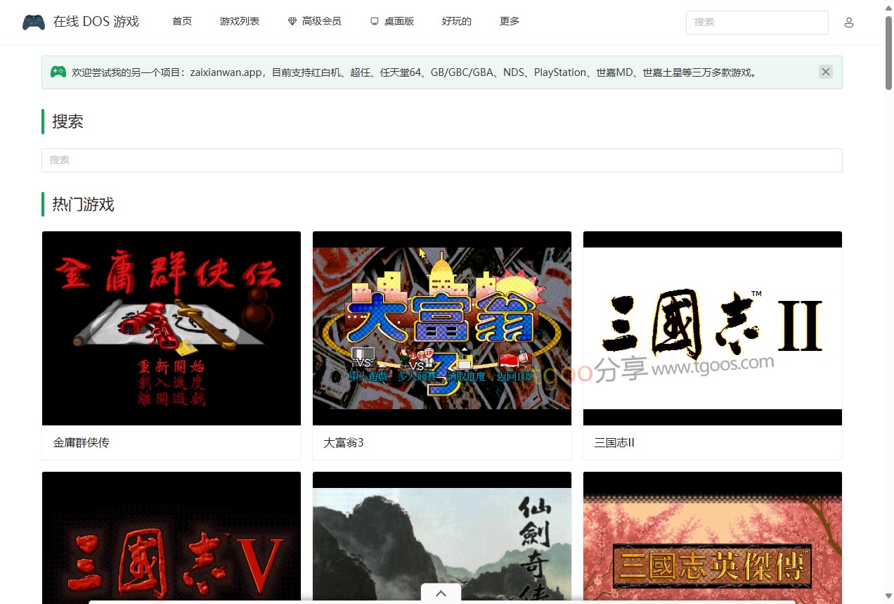 在线 DOS 游戏主要功能