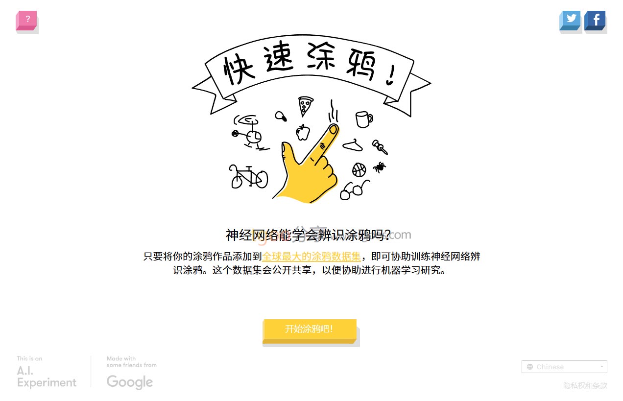 趣站地址:快速涂鸦-谷歌AI绘画识别互动游戏