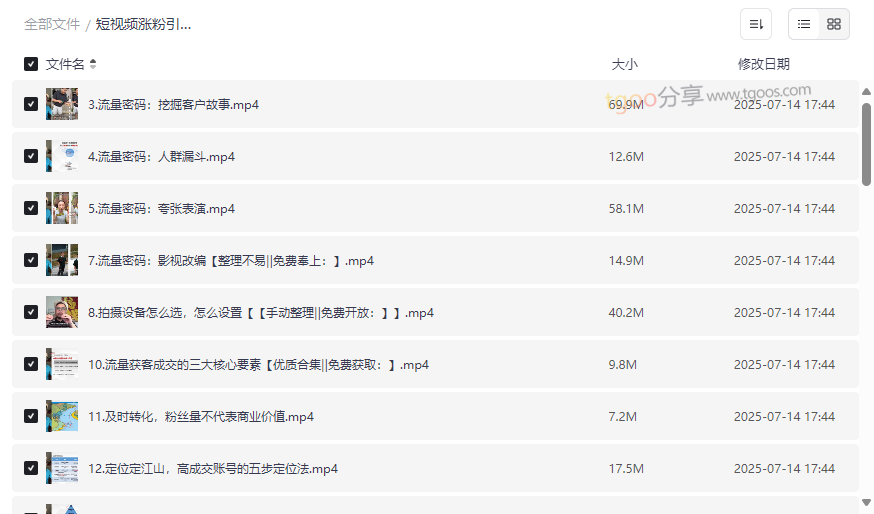 资源地址:《短视频涨粉引流课2.0版》全流程教程|免费网盘资源下载