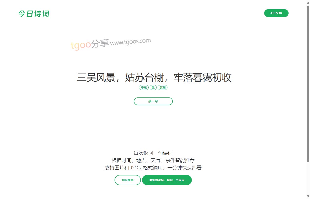 趣站地址:今日诗词-实时智能推荐古诗词API