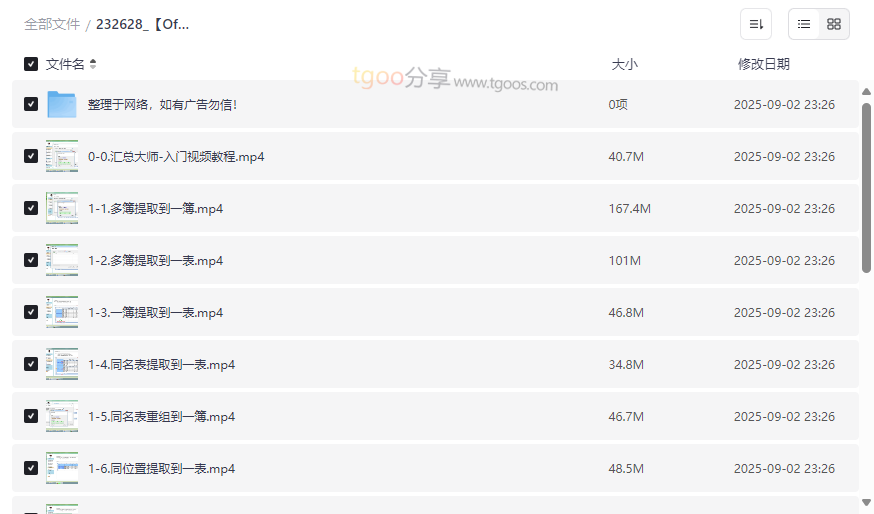 在当今数据驱动的职场环境中,Excel已成为处理和分析数据的核心工具。这份 “Excel汇总大师视频教程” 资源,专为提升数据处理效率而设计,系统覆盖了从基础入门到高级应用的各类数据汇总、提取与拆分技巧。本资源集合了 多簿多表提取、同名表重组、动态字段合并、批量重命名与字段调整 等实战操作,将复杂的数据处理流程简化为清晰易懂的视频教学,适合: