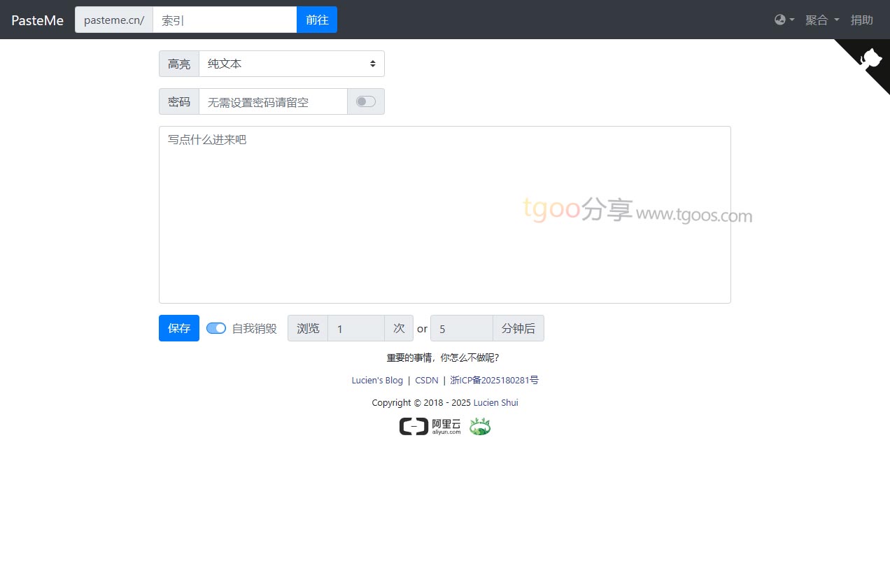 趣站地址:PasteMe-安全便捷的文本分享平台