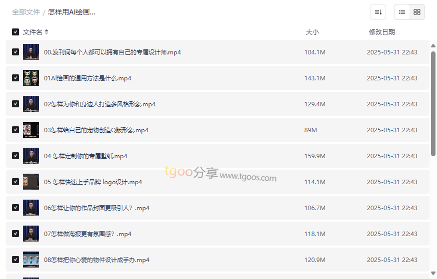 “怎样用AI绘画(完结)”是一套全面、实用的AI绘画实战课程,专为希望掌握AI绘画技能的学习者设计。本资源系统讲解了AI绘画的通用方法、多风格形象定制、宠物Q版设计、专属壁纸创作、品牌Logo设计、作品封面优化、海报氛围营造、手办设计、艺术照场景设计、饰品创作、家装设计、绘本与漫画创作、超现实主义风格应用等丰富内容。课程以视频为主,配合PDF教材和资源福利,帮助用户从零开始,快速成为AI绘画达人。无论你是设计师、创作者、营销人员,还是普通爱好者,这套资源都能让你轻松玩转AI绘画,释放无限创意。