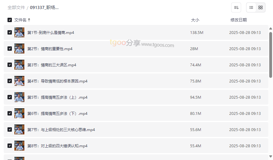 “职场情商”作为现代职场核心竞争力之一,直接关系到个人职业发展与团队协作效率。本资源集合了 23节系统化视频课程,涵盖情商基础认知、上下级关系处理、同事协作技巧、沟通表达优化及客户交流策略等多维度内容,将抽象的情商概念转化为可操作的具体方法,适合: