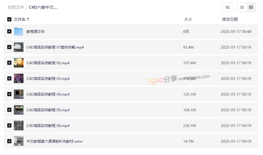 C4D六套中文高级实例教程资源目录