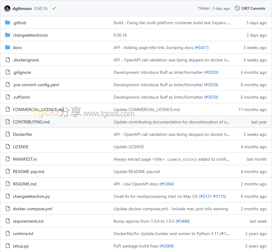 dgtlmoon / changedetection.io项目地址:https://github.com/dgtlmoon/changedetection.io