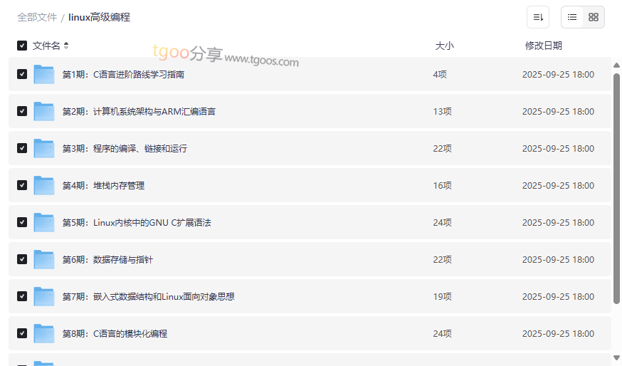 Linux高级编程作为嵌入式开发与系统编程的核心技能,在当今技术领域具有极高的实用价值。本资源集合了从C语言进阶到Linux内核编程、从ARM汇编到系统架构、从内存管理到模块化设计的全方位知识体系,将理论深度与实践案例紧密结合,适合:
