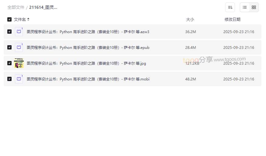 这套资源包含完整的10册内容,覆盖Python编程的各个关键领域,从语法基础到高级应用,逐步引导读者成为Python高手。每册内容结构清晰,案例丰富,适合不同阶段的学习者系统学习。 - 多格式电子书文件