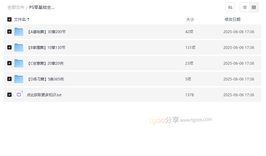 资源地址:《PS零基础全攻略》ABCD全系列教程|2025最新高清视频+课件素材免费下载