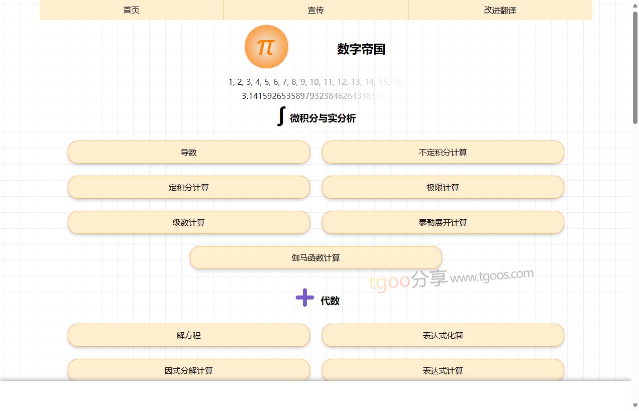 数字帝国是一个专注于数学计算与数字资讯的在线工具箱平台,提供从基础算术到高等数学的各类计算器与数学工具,帮助学生、教师、工程师、研究人员及数学爱好者快速完成数学问题求解、函数绘图、数字属性分析等任务。该平台集成了强大的数学引擎与直观的交互界面,覆盖代数、微积分、数论、统计等多个数学分支,支持实时计算与可视化输出。据公开信息,数字帝国提供免费的基础工具使用,无需注册即可访问,适合课堂辅助、自学练习、科研计算与日常问题求解。与传统手动计算或分散工具相比,数字帝国通过一站式集成与自动化处理,显著降低数学学习的门槛与时间成本,提升计算准确性与效率。