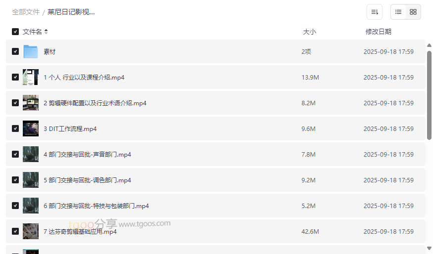 莱尼日记影视剪辑全流程入门+短剧实战课资源目录