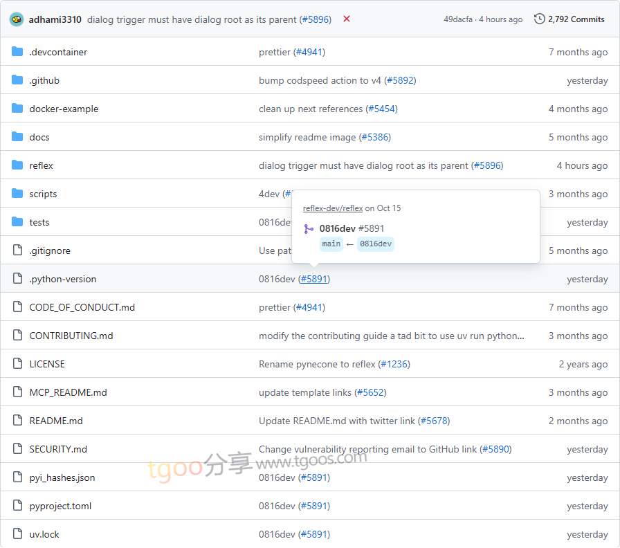 reflex-dev / reflex项目地址:https://github.com/reflex-dev/reflex