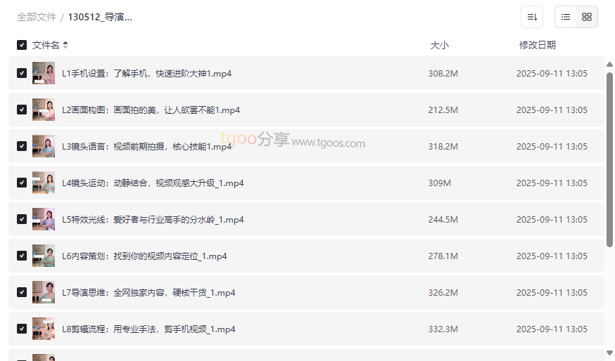 “导演拍摄剪辑核心视频课程”是一套专为现代创作者设计的全面视频制作指南,从手机拍摄到专业剪辑,覆盖视频创作全流程。本资源集合了 手机设置、画面构图、镜头语言、特效光线、内容策划、导演思维、剪辑流程、声音设计、转场过渡、高级调色及整合思维 等模块,将理论与实践紧密结合,帮助用户从爱好者进阶为行业高手。这套课程适合: