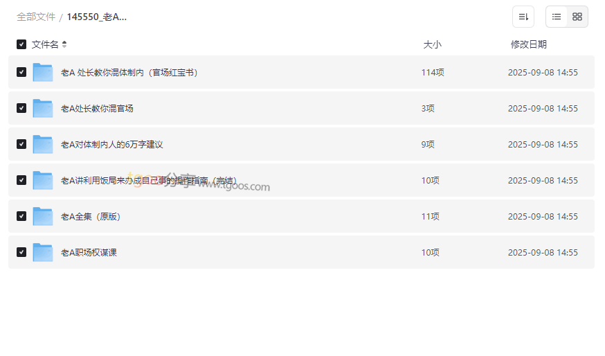 包括 官场39条潜规则、体制内答疑20条、送礼诀窍 等,可单独学习重点模块。例如,老A精讲体制内答疑20条.pdf 针对常见困惑提供精准答案,节省摸索时间。