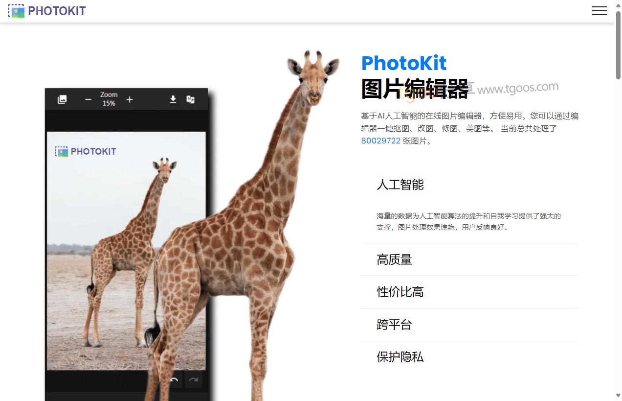 趣站地址:PhotoKit-免费在线图片编辑器