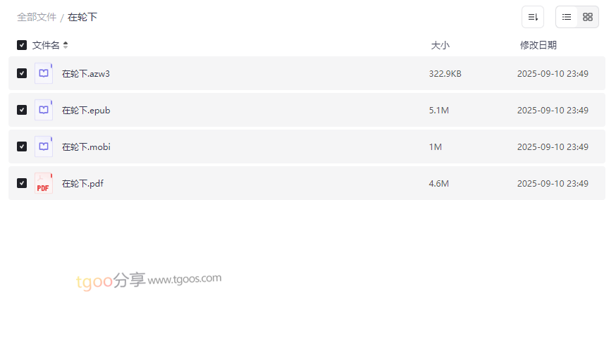 资源地址:《在轮下》赫尔曼·黑塞经典电子书全集下载 – 多格式网盘资源