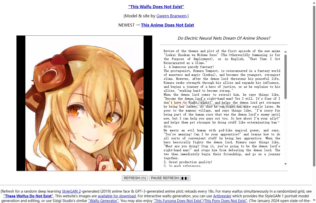 趣站地址:This Waifu Does Not Exist-AI生成动漫角色与文本