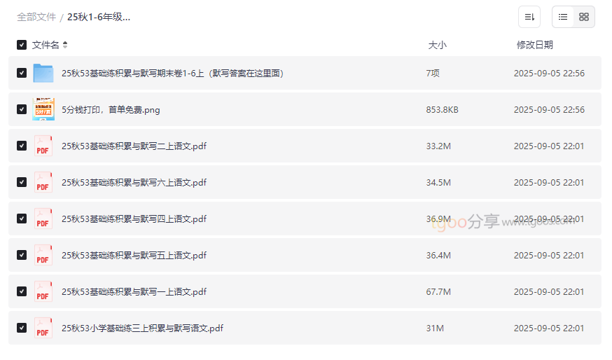 25秋1-6年级语文上册《53积累与默写+期末卷》资源目录