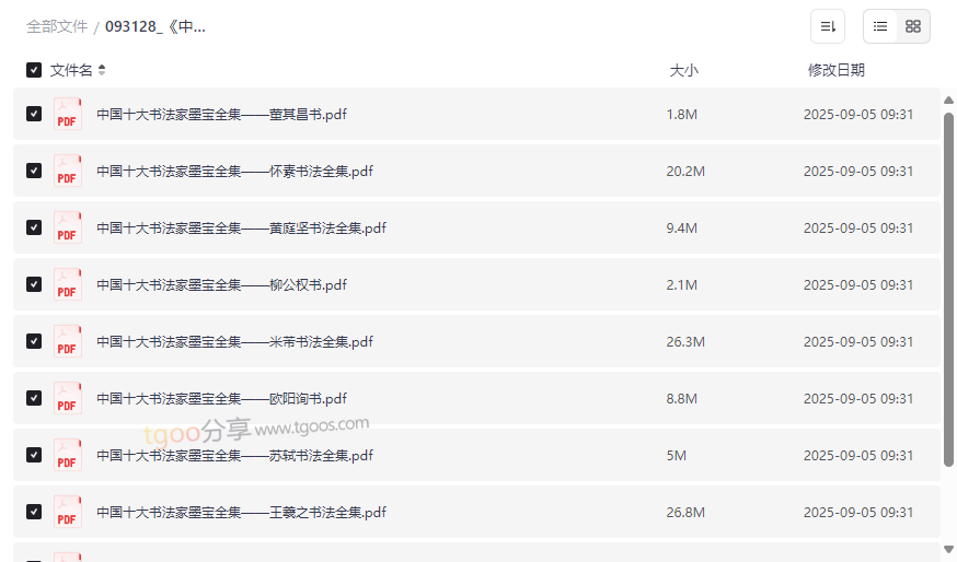 中国十大书法家墨宝全集资源目录