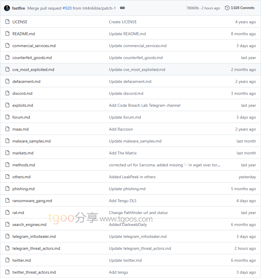 在GitHub仓库中查看整理好的各类情报源链接,按类别进行筛选和使用。