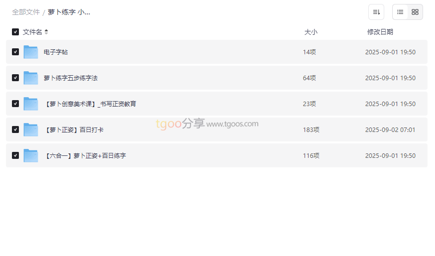 萝卜练字小学生硬笔书法课资源目录