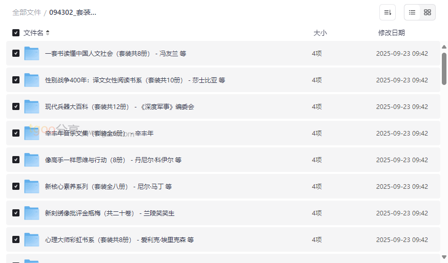 这份价值上千元的套装电子书合集汇集了53套精选图书,涵盖人文社科、心理励志、历史军事、文学小说等多个领域。每套资源均提供AZW3、EPUB、MOBI等多种电子书格式,适配各类阅读设备。这套高质量网盘资源不仅内容权威、覆盖面广,而且便于携带与收藏,是数字阅读爱好者的理想选择。适合: