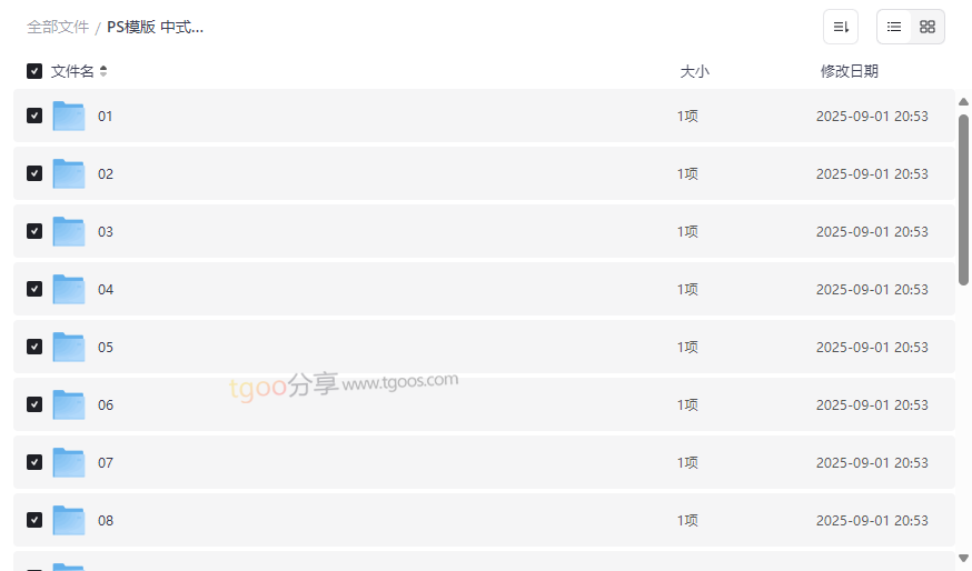 具体分类包括: - 文件夹01-08:每文件夹含8款中式PSD,覆盖婚礼、庆典等主题