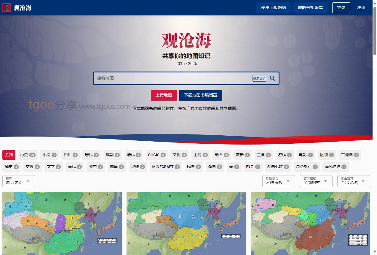 观沧海是一个专注于地图共享与知识管理的在线平台,提供历史地图、文化地图、城市地图等各类地图数据的创建、共享与协作功能,帮助历史研究者、文化爱好者、城市规划师及教育工作者便捷地获取、制作与分享地图知识。该平台基于知识共享授权,允许用户发布和再利用地图数据,支持在线共享与本地编辑相结合的工作流。据公开信息,观沧海创办于2015年,现已迁移至地图书知识库应用中,用户可通过地图书编辑器在本地高效制作地图,或直接在线共享,适用于教学、研究、文化传播等多种场景。平台强调社区协作与数据开放,提供免费基础服务,可能包含高级功能或扩展支持,适合需要地图制作与共享的团队和个人。相比传统地图工具,观沧海更注重知识积累与共享,简化了地图数据的发布流程,促进中国地图、历史地图等资源的广泛传播。
