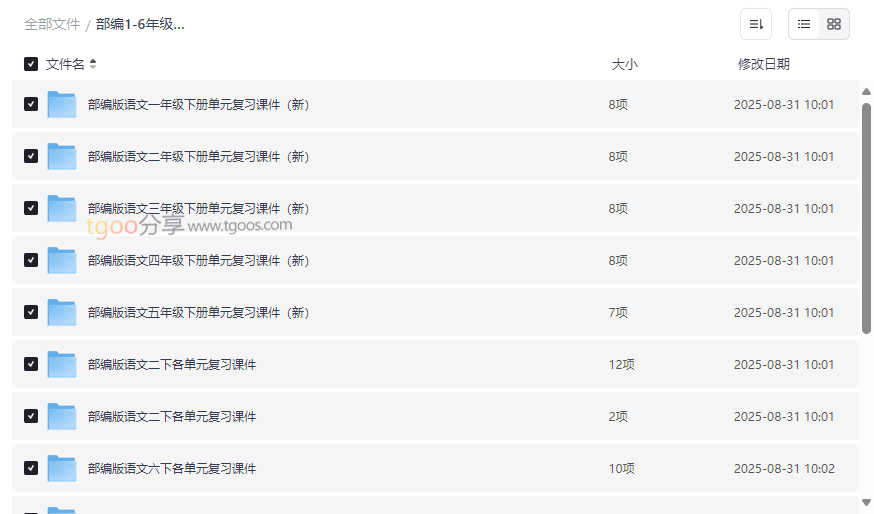 部编版语文复习课件资源目录